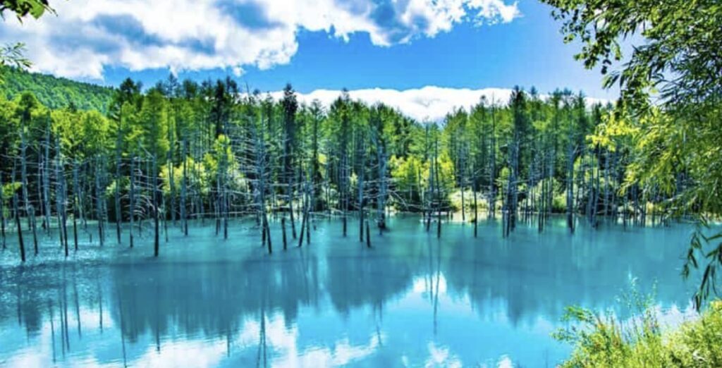 なだらかな丘と不思議な青い池。